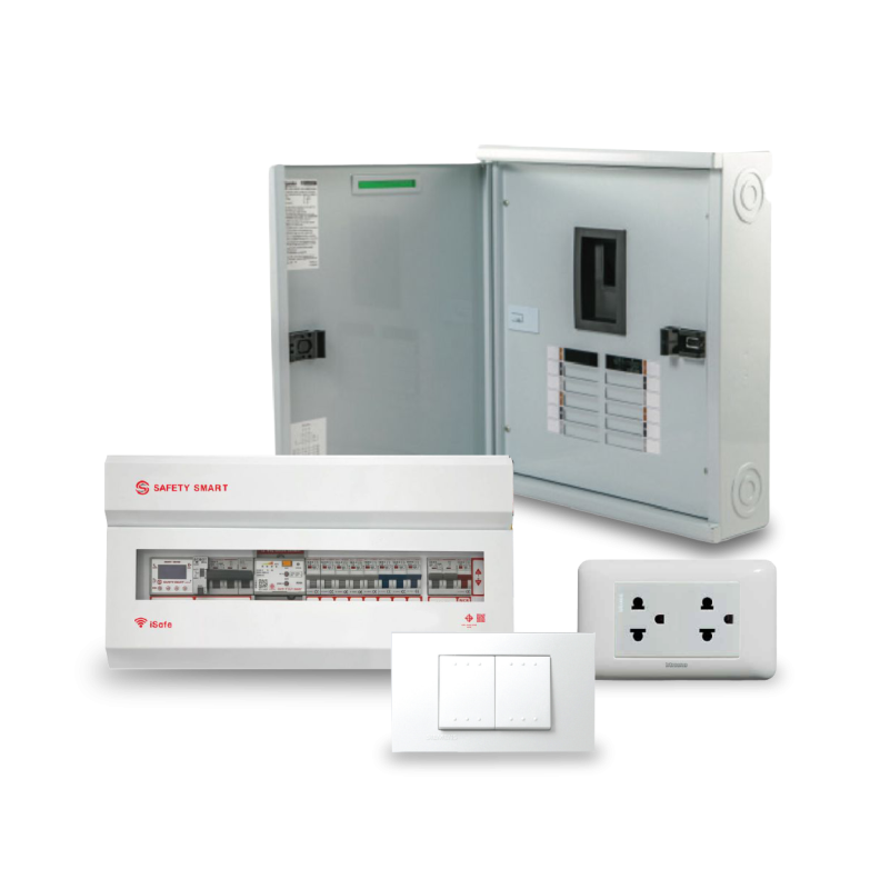 เช่น สวิตช์ไฟ, ปลั๊กไฟ, ตู้คอนซูเมอร์, เบรกเกอร์, ไฟฉุกเฉิน, กระดิ่งไฟฟ้า, ท่อร้อยสายไฟ และอื่นๆ