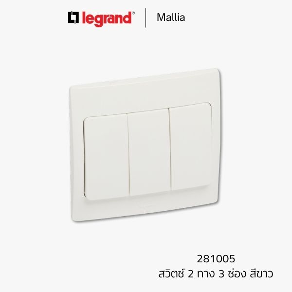 สวิตช์สองทาง 3 ช่อง Legrand Mallia สีขาว