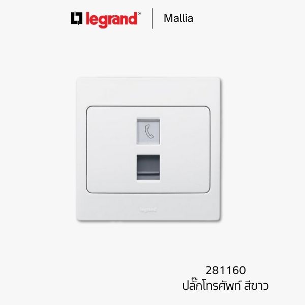 ปลั๊กโทรศัพท์ พร้อมหน้ากาก Legrand Mallia สีขาว