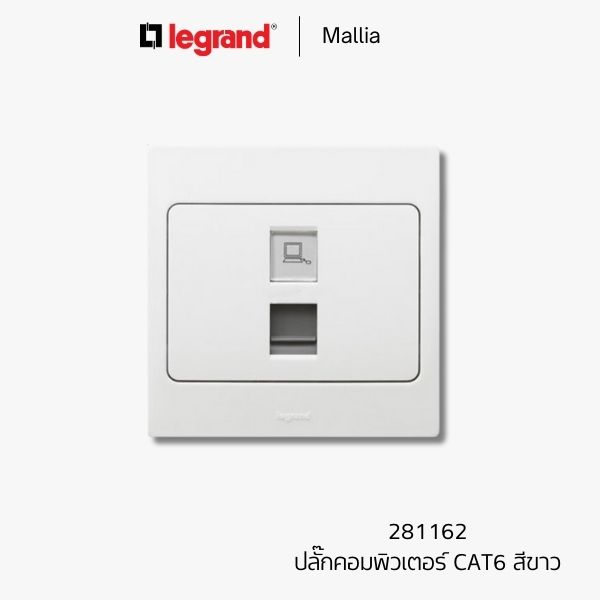 Bticino Legrand Mallia Data socket – RJ 45 – category 6 – UTP – white (ชุดเต้ารับคอมพิวเตอร์ CAT6 พร้อมหน้ากาก 281162)