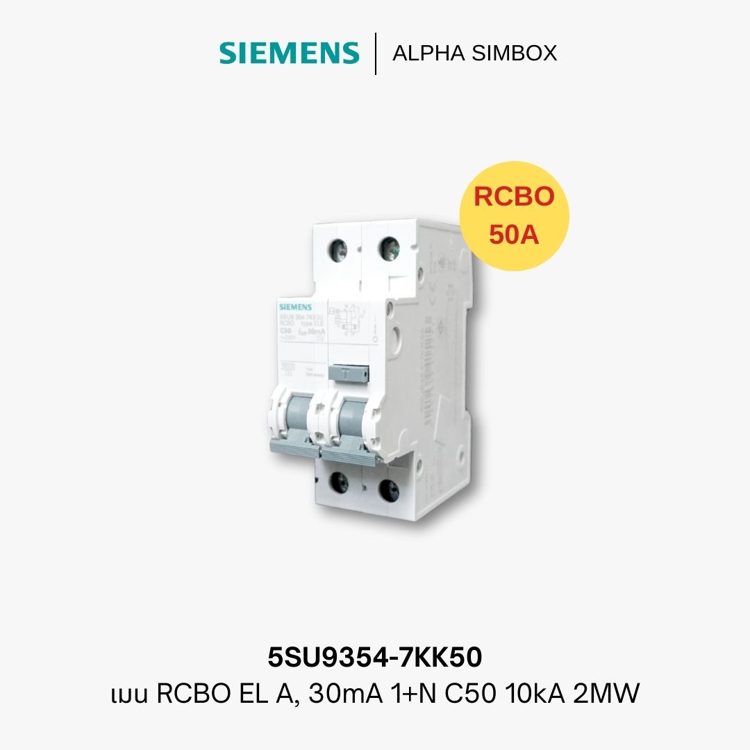 - เมน RCBO EL A, 30mA 1+N C50 10kA 2MW รหัส 5SU9354-7KK50
