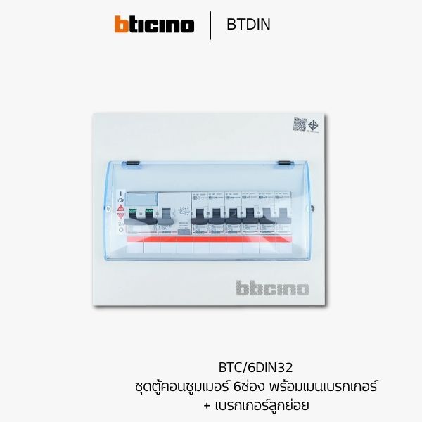 Consumer Unit Bticino ตู้คอนซูมเมอร์ 6 ช่อง พร้อมเมนเบรกเกอร์ + เบรกเกอร์ลูกย่อย – BTC/6DIN32