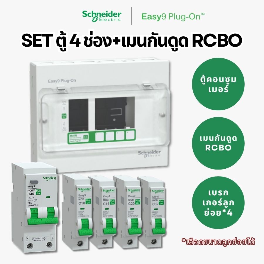 Schneider Easy9 | ชุดตู้คอนซูมเมอร์ยูนิต 4 ช่อง + เมนกันดูด + เบรกเกอร์ลูกย่อย