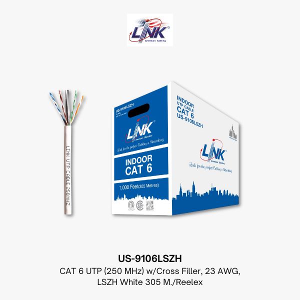 สายแลน CAT6 U/UTP (250MHz) พร้อม Cross Filler ความยาว 305 เมตร – 23AWG, LSZH สีขาว (Reelex) #US-9106LSZH