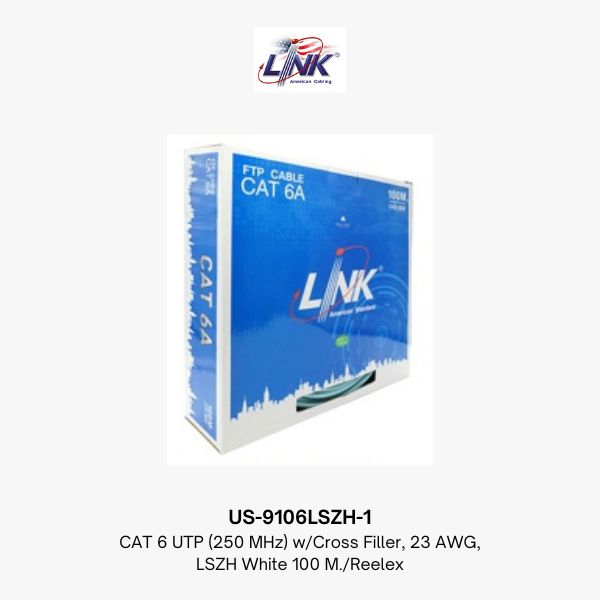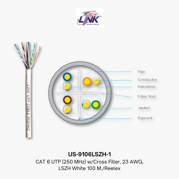 สายแลน CAT6 U/UTP (250MHz) พร้อม Cross Filler ความยาว 100 เมตร – 23AWG, LSZH สีขาว (Reelex) #US-9106LSZH-1