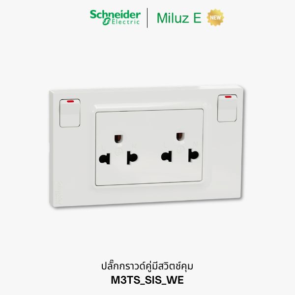 Schneider รุ่น Miluz E ปลั๊กกราวด์คู่ มีสวิตช์คุม ประกอบพร้อมใช้งาน – M3TS_SIS_WE
